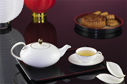 Bộ trà 0.47L Elip Chỉ vàng bao gồm: - Bình trà : 1 chiếc - Tách trà : 6 chiếc - Đĩa lót tách : 6 chiếc