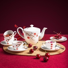 Bộ trà 0.8L Hoa đào bao gồm: - 01 bình trà 0.8L - 06 tách 0.11L - 06 dĩa lót tách 13cm